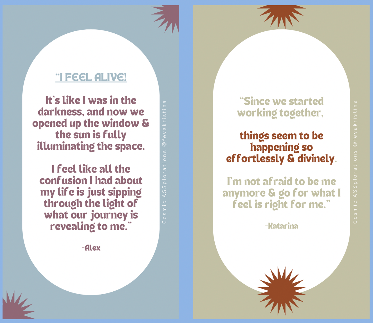Cosmic ASS sessions are deeply intuitive, customized to your unique energetic frequency, ritualistic & holistic; mind-engaging, body-connecting & soul-igniting. They offer powerful initiations & activations of your highest potential, showing you the vastness of possibilities your soul came to experience in this life-time & empowering you to choose what is of the highest service to you & your evolution.